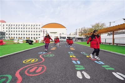11月11日,在长春市第一实验银河小学,学生在操场上进行课间活动。