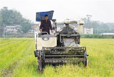 11月14日,在重庆市垫江县普顺镇红岩村,农民驾驶收割机收获再生稻。时下,重庆市垫江县再生稻迎来丰收季,当地农民抢抓好天气收获水稻。再生稻是种一季收两茬的水稻,头茬水稻收割之后,二茬随即开展管理工作,利用稻桩重新发苗、长穗。近年来,垫江县在加大高标准农田建设,完善水利工程和生产道路等基础设施的同时,大力推广再生稻优质新品种和种植新技术,助力粮食丰产丰收。
