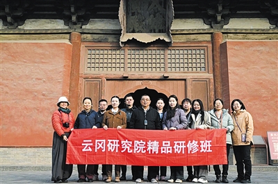 云冈研究院2024年精品研修班近日结营。本次研修班以“鉴赏云冈石刻、探寻古都风华”为主线,通过云冈石窟实地教学、专家讲座、文物保护及古建筑参观等活动,带领学员们共同探索云冈石窟深厚的历史底蕴,领略大同这座古都的文化魅力。简短而庄重的开班仪式后,在王恒、王雁卿老师的专业讲解下,学员们对云冈石窟的历史、艺术价值有了更加深刻的认识。赵昆雨老师从云冈石窟的雕刻艺术出发,深刻阐释了云冈石窟雕刻艺术上长足深远的影响,他的讲述不仅丰富了造像背后的历史内涵,也为现场教学增添了深厚的理论色彩。本次研学活动也对大同地区及其周边辽金时期古建筑进行了探讨研究。在李雪芹老师的专业指导下,带学员们全面认识世界上现存最古老的纯木结构阁楼式建筑应县木塔,深刻理解了其历史意义与建筑价值。同时,对朔州的崇福寺进行了实地考察。研修期间,特别邀请了大同古建筑专家白志宇为学员们进行专业的解说。白老师深入解析了善化寺壁画的艺术价值,为学员们揭开了其背后蕴含的奥秘。四天的研修中,各年龄层的学员均以极高的热情投入到学习之中,在结业沙龙上,学员们纷纷发表感言,用“喜悦、感动、贴心、温暖”等词汇表达了对本次研修班的认可。学员们还为云冈石窟提出了宝贵的建议,体现了他们对云冈石窟未来发展的关注和思考。