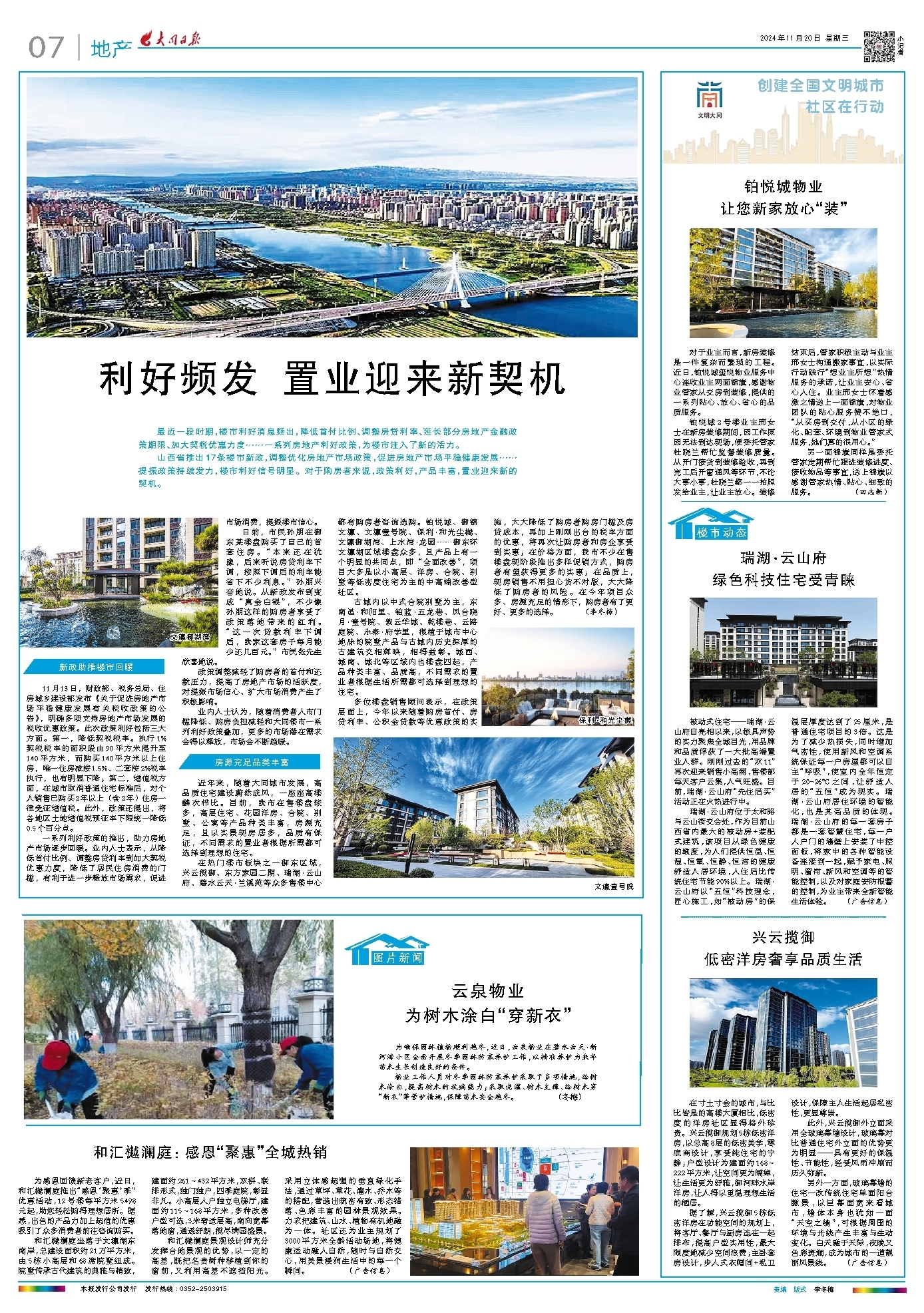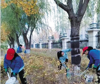 物业工作人员对冬季园林防寒养护采取了多项措施,给树木涂白,提高树木的抗病能力;采取浇灌、树木支撑、给树木穿 “新衣”等管护措施,保障苗木安全越冬。 (冬梅)