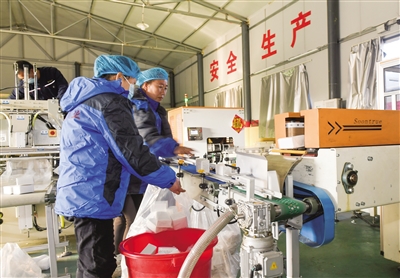 11月26日,在灵丘县落水河乡大涧村的馨柔纸制品全自动生产线上,工人们正在紧张调试设备。为了进一步壮大农村集体经济,带动更多的村民实现家门口就业,大涧村今年实施了馨柔纸制品加工扩建工程。扩建后的纸制品加工项目又增添了2条生产线,预计今年村集体可实现利润分红32万元左右。本报记者 于宏摄