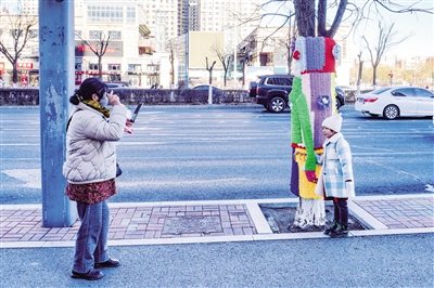 近日,我市南环东路边一些大树“穿”上了漂亮的“毛衣”。五彩斑斓的“毛衣”,在冬日阳光下熠熠生辉,将原本单调的树木装点得童趣十足,为这个寒冷的冬天增添了几许暖意。 本报记者 韩堃摄