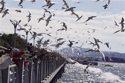 近日,大批红嘴鸥陆续抵达春城昆明,吸引大批游客前来观赏。据昆明鸟类协会介绍,截至目前,飞抵昆明的红嘴鸥已有3万多只,预计12月10日左右将达最高峰,海埂公园、海洪湿地、宝丰湿地、翠湖等地都是经典的观鸥点。