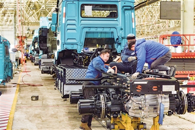 本报讯 (记者 闫昌) “车架预装、走线、车架翻身、安装电控系统、安装电池……”12月18日,记者来到陕汽大同专用汽车有限公司生产车间,只见一派忙碌景象,一辆辆崭新的底部换电重卡正列队准备下线。