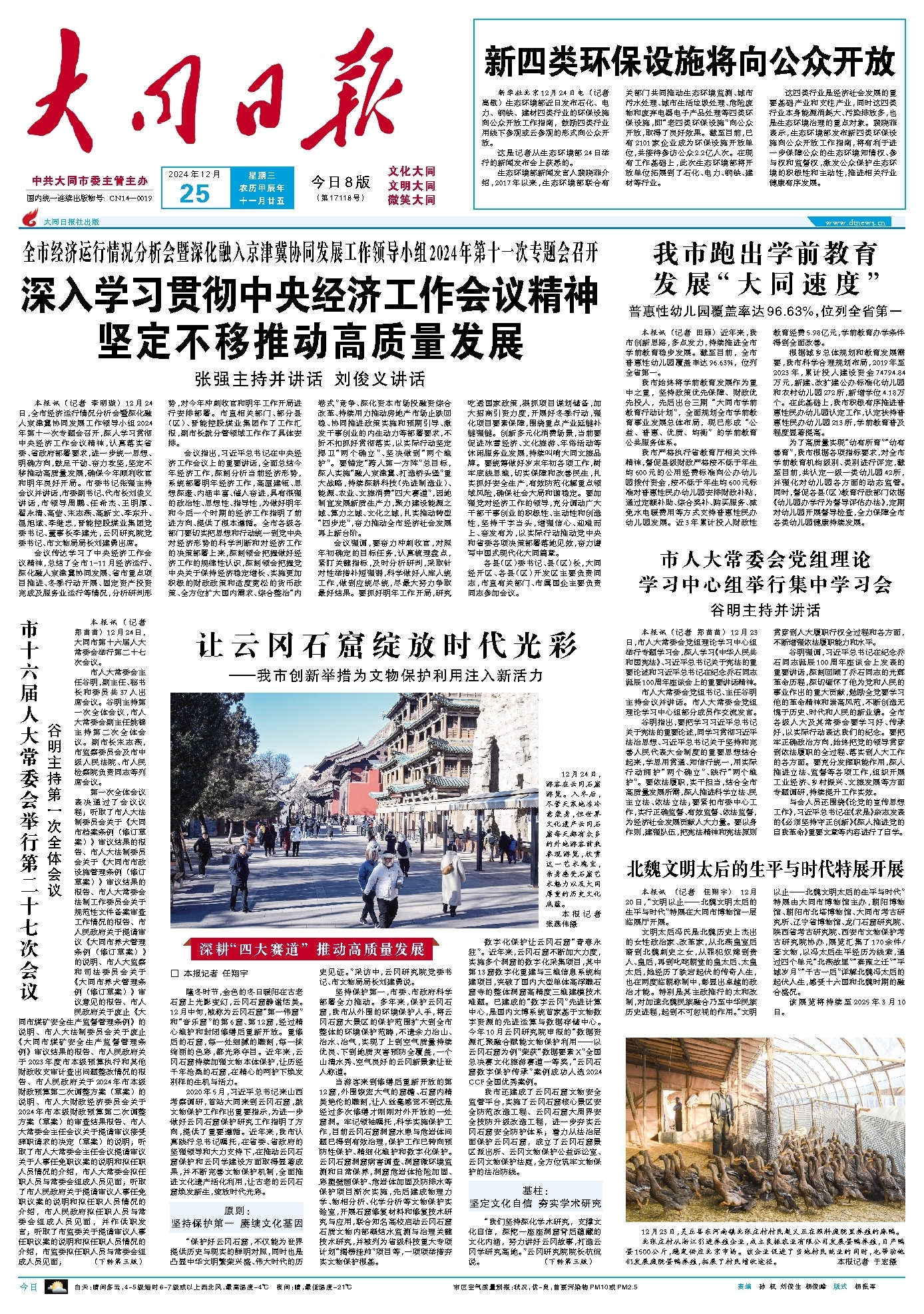 全市经济运行情况分析会暨深化融入京津冀协同发展工作领导小组2024年第十一次专题会召开~~~张强主持并讲话 刘俊义讲话