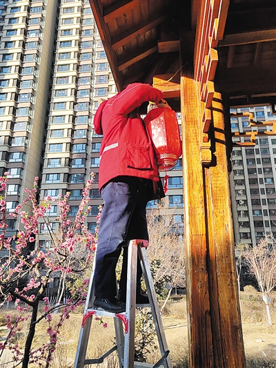 悦家物业保洁部启动“迎新春大扫除”行动,全体保洁员细致入微地打扫园区每一个角落,力求营造干净整洁、舒适宜人的居住环境。同时,为了增添喜庆气氛,悦家物业工程部精心购置设计了各种装饰物,贴福字、挂灯笼……当夜幕降临时,小区入口、道路两侧以及绿化带上点缀着各式各样的彩灯和红灯笼,让园区内的每一个角落都充满了喜庆的年味儿。