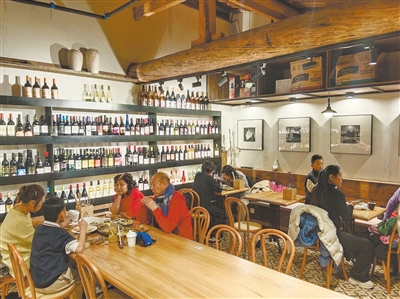 2月2日(正月初五),记者来到大同古城东南邑历史文化街区,千年时光遗韵扑面而来,每扇木门、每个院落,一砖一瓦一雕一刻间,都让人感受到浓郁的文化气息。在这古色古香的街区里,藏着一座欧啦餐酒馆,欧式的酒柜、琳琅满目的酒品……别出心裁的装修风格,让人深感特别放松。