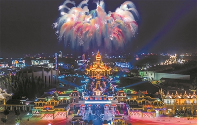 巡游结束后,梦幻广场的“新春喜乐会”主题晚会劲爆开启。舞台上灯光璀璨,精彩节目接连不断。台下游客们可以在欢声笑语中围着篝火牵手狂欢,共度欢乐团圆时刻。