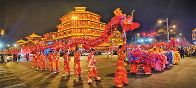 为满足游客对高质量文化活动的需求,提升游客的体验感和满意度,浑源古城上演多项精彩纷呈的文化盛宴。农历腊月二十三举办浑源春晚,农历正月初二举办“状元台”脱口秀表演,正月初三举办新年书画展,正月初六推出综合性演艺,正月十三举办浑源县元宵节有奖灯谜竞猜活动;在浑源州署上演《穆桂英比武招亲》系列情景剧﹑宫廷舞器乐合奏﹑浑源扇鼓﹑非遗戏曲演出及优秀书画作品﹑浑源老照片展示;在恒山景区举办“跟着悟空游山西 古建巡礼活动”,除夕夜五岳联盟迎新祈福,浑源传统民俗进景区表演;在神溪湿地公园,除夕夜举办神溪花火大会及五彩凤凰盘旋表演;在游客服务中心举办烟花秀共庆元宵节活动。