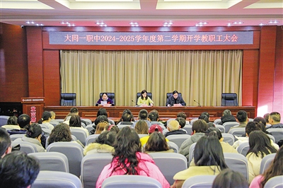 本报讯 (记者 闫春平) 为明确新学期工作方向,凝聚团队力量,确保开学各项工作平稳、有序、高效开展,2月17日上午,大同市第一高级职业中学全体教职工以昂扬的精神面貌、饱满的工作热情齐聚学校报告厅,召开2024—2025学年度第二学期开学教职工大会。