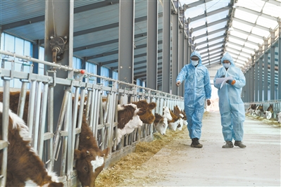 灵丘县原野种养有限公司作为县全面推进乡村振兴重点扶持的现代化、规模化企业,通过智慧化管理生产流程,从车间、库房、牛舍到化粪池,实现了高效养殖种植相结合。此外,公司还新建了2000多亩的种植园区,进一步拓宽了农业产业链。该公司不仅注重经济效益,更重视生态效益,以绿色有机、低碳循环、可持续发展理念引领农业产业发展,为灵丘县农业高质量可持续发展注入新的活力。图为工作人员对圈养和牛、西门塔尔肉牛完善信息登记与管理。