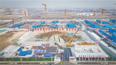 早春时节,河北雄安新区多处建设工地塔吊林立、机器轰鸣、车辆穿梭,数以万计的建设者以高标准高质量推进项目建设,呈现出一派热火朝天的繁忙景象。