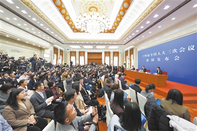 新华社北京3月4日电 十四届全国人大三次会议4日中午举行新闻发布会,大会发言人娄勤俭就会议议程和人大有关工作回答了中外记者提问。