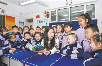 3月4日,平城区第十小学一年级教师为学生讲述雷锋的故事。