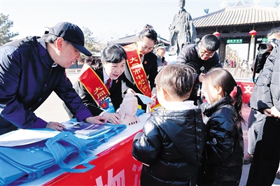 就在这部法律即将施行之际,2月28日上午,大同市中级人民法院、云冈研究院以及云冈区人民法院在云冈石窟景区联合举办了一场主题为“牢记领袖嘱托 法护文化瑰宝”普法宣传活动。全国人大代表、云冈研究院院长杭侃,市中级人民法院党组书记、院长丁国华,云冈区人民法院党组书记、院长刘保平等带队来到现场,与游客和市民共同学习新修订的文物保护法,感受云冈文化深厚的底蕴和优质司法服务成果。