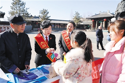 当日,活动现场游客纷至沓来,不仅有来自北京、山东、江苏等地的国内游客,还有来大同旅游的外国友人……目之所及,他们被眼前的普法宣传活动深深吸引住了……