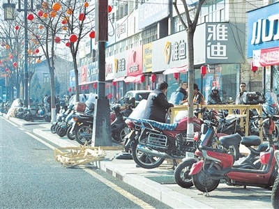 在武定街,许多商家将售卖或维修的电动自行车摆放在非机动车道上,占用了本应供行人和非机动车通行的空间。部分商家甚至将垃圾堆积在非机动车道上,导致行人不得不绕行机动车道,增加了交通安全风险。