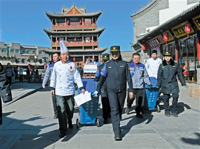 本报讯 (记者 辛雅君 见习记者 杨星仪) 为全面提升大同古城旅游形象,3月21日,由市城市管理局组织,大同市驰奈能源科技有限公司负责,在古城内云锦会门前向古城餐饮商户发放首批200余个定制餐厨垃圾桶,这也标志着古城餐厨垃圾收运示范区建设正式启动,餐厨垃圾由原本的定点收运转变为定时上门收运,从源头治理餐厨垃圾桶随意外摆现象。