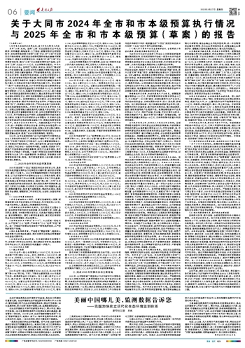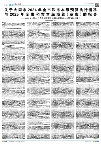 关于大同市2024年全市和市本级预算执行情况与2025年全市和市本级预算(草案)的报告