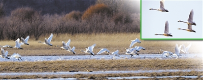近日,大同桑干河国家湿地公园迎来了200余只天鹅。这些天鹅在河面悠然觅食、梳理羽翼,构成一幅美丽的生态画卷,摄影爱好者们用镜头记录下了天鹅的优雅和湿地的静谧。近年来,随着生态治理的深化,桑干河湿地已成为候鸟迁徙的重要驿站,吸引了越来越多珍稀鸟类在此栖息。 本报通讯员 魏向东 刘力源摄