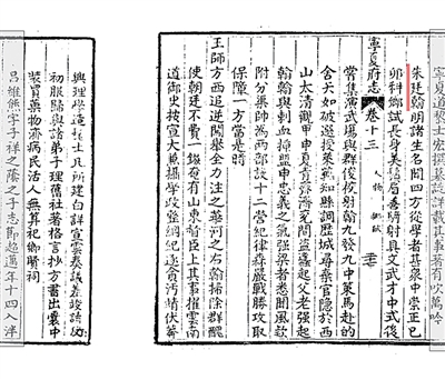 朱廷翰,明诸生,名闻四方,从学者甚众,中崇正(祯)巳卯科乡试,长身美须眉,善骑射,具文武才。中式(试)后,尝集演武场与群俊校射,翰九发九中,策马赴的,舍矢如破。选授莱芜知县,调历城,寻,弃官隐于西山太清观。甲申夏,青、齐、济、兖间盗蜂起,父老强起翰,翰与刺血插(歃)盟,申忠义之气。强梁者悉闻风款附,分渠师为两部,设十二营,纪律森严。战胜攻取保障一方。当是时,王师方西追逆闯,举全力注之华河之右。翰扫除群丑,使朝廷不费一镞奄有山东。督臣上其事,擢云南道御史,按宣大兼摄学政,整纲纪、逐贪污、靖伏莽、与理学、造髦士,凡所建白详《宣云奏议》,差竣请反。初服归与诸弟子理旧社,著格言抄方书,出囊中装买药物济病民,活人无算,祀乡贤祠。