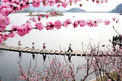3月29日,市民在江苏省连云港市连云区宿城唐王湖景点游玩。