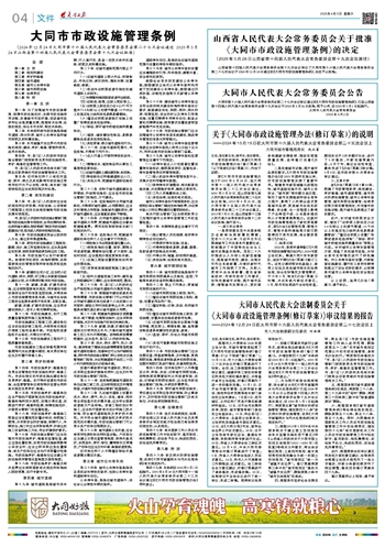 关于《大同市市政设施管理办法(修订草案)》的说明