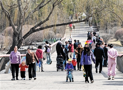 ▼ 清明假期,市民、游客纷纷前往文瀛湖生态公园游玩。湖面波光粼粼,倒映着蓝天白云,人与自然和谐共处,尽显生态之美,游人尽享“半城碧水一城春”的惬意时光。