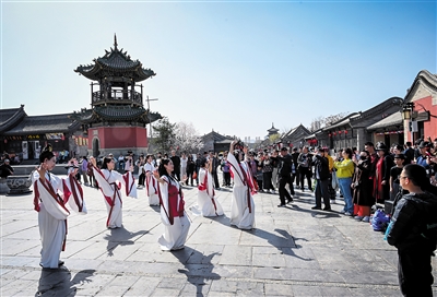 清明假期,大同古城鼓楼东、西街及东南邑成为欢乐的海洋,一场场沉浸式表演精彩上演,“千年微笑”传递历史温度,优美古装舞蹈尽显古韵风姿,传统弹唱余音绕梁,活力街舞嗨翻现场,多元艺术在此碰撞,引得众多游客纷纷驻足观看,沉浸在这历史与现代交融的魅力中,尽享轻松假期。 本报记者 张燕伟摄