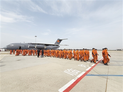 当日,赴缅甸开展地震救援的中国救援队、由中国军队参与组派的中国国际救援队和中国香港特区救援队完成国际救援任务,乘坐四架中国空军运-20飞机从内比都抵达北京。 新华社记者 才扬摄