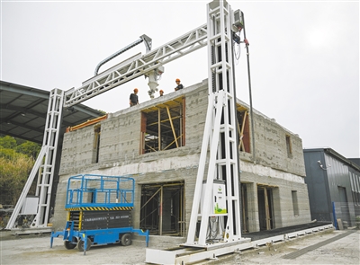 近日,在湖北宜昌三峡大学3D打印研发基地试验场,一栋由学校自行研发的12米级龙门式建筑3D打印机建设的双层小楼实现封顶,目前正在进行斜坡屋顶的施工安装。这栋双层小楼高8米,占地100平方米,比传统建造工期缩短约70%,打印的效率和完整性达到预期效果。