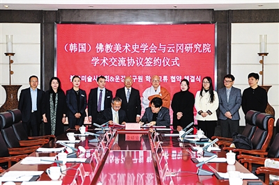 本报讯 (记者 赵喜洋) 近日,韩国佛教美术史学会与云冈研究院学术交流协议签约仪式在云冈研究院一楼会议室举行。此次协议的签署旨在推动双方长期稳定的学术合作,共同促进中韩两国佛教美术史及相关领域的研究取得进步发展。