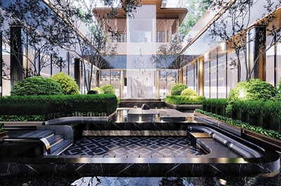 除了在建筑上的精巧设计,华鸿·东方柏翠还开创性地构建了立体生态庭院体系,精心打造下沉式庭院,借垂直空间营造独特意境,为都市生活带来一抹清新的绿意。