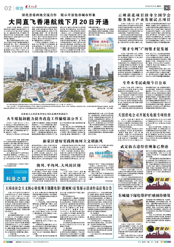 本报讯 (记者 贾晓龙) 大同云冈国际机场与香港大湾区航空将于5月20日首次合作开通大同直飞香港航线。这一新航线的开通,不仅缩短了两地间出行时间,还将促进经贸、文旅等领域交流合作,这是记者昨日从云冈国际机场了解到的。