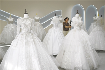 安徽省六安市裕安区丁集镇是全国有名的婚纱生产和出口基地,全镇共有婚纱生产上下游企业500余家,超过1.5万名相关从业者,打造出年产值24亿元的“甜蜜”产业。该镇2024年生产销售近500万件婚纱礼服,占全国婚纱礼服市场的30%左右,产品远销30多个国家和地区。