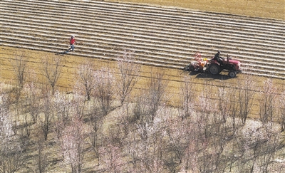 4月22日,阳高县龙泉镇八里台村的田间地头一派繁忙景色,春耕春播工作正有序开展。为保障春耕春播顺利推进,该县早谋划、早部署,加强农资门店调度,籽种、化肥、地膜等物资储备充足;指导农机手检修农机具1350台,培训150人次;组建技术团队,推广多项种植技术,落实多个种植项目。目前,全县已完成春耕近40万亩,播种工作也在有序进行中,以扎实举措筑牢粮食安全根基。 本报记者 张占兵摄