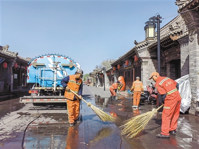 本报讯 (记者 张志忠) 冲洗路面、清理垃圾、擦拭设施……为进一步美化大同古城市容环境卫生,创造更加整洁、优美的节日环境,保障市民、游客良好的旅游出行体验,4月23日,平城区环卫服务中心再次吹响“集结号”,组织所辖机扫、清洁、古城、国省道、乡村等公司,集中力量对大同古城全区域进行垃圾死角排查清理和道路清洗工作。