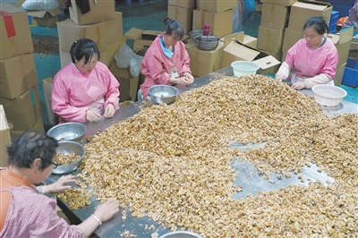 近年来,地处秦岭南麓的陕西省商洛市洛南县积极利用自然禀赋,加快核桃产业发展,通过抓种植基地和配套设施建设、扶持生产销售龙头企业、延长产业链条促进一二三产融合发展等举措,持续壮大培优核桃产业。截至2024年底,洛南县核桃种植总面积70万亩,拥有核桃加工贸易企业、合作社210余家;2024年全县销售核桃10万吨,核桃产业综合产值25亿元。