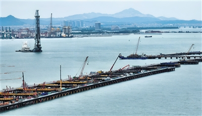 这是4月26日拍摄的厦金大桥(厦门段)项目海上桥梁施工现场(无人机照片)。