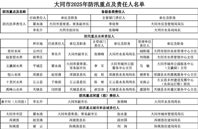 大同市2025年防汛重点及责任人名单