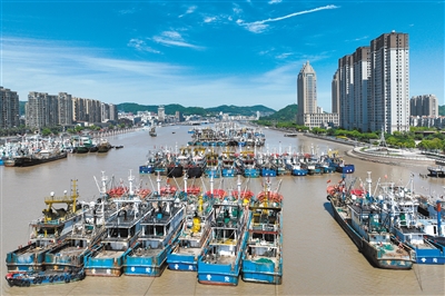 5月1日12时起,我国渤海、黄海、东海和北纬12度以北的南海海域将全面进入海洋伏季休渔期。图为,4月29日,在浙江省舟山市沈家门渔港,渔船归港准备休渔(无人机照片)。 新华社发(邹训永摄)