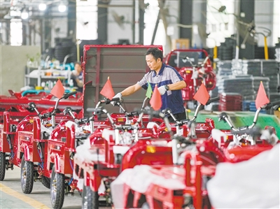 在四川眉山天府新区双胜新能源车业有限责任公司的生产车间流水线上,工人们正紧锣密鼓组装一批即将发往非洲、东南亚的电动三轮车。