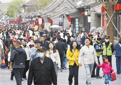 ▲“五一”假期首日,大同古城迎来游客高峰。图为鼓楼西街游人如织。