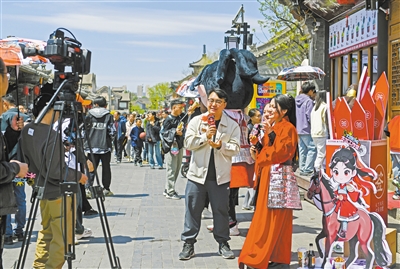 本报讯 (记者 郝雨) 5月1日上午,大同日报传媒集团木兰工作室鼓楼西街官方授权店门前,一场别开生面的直播活动为广大市民、游客和网友带来充满趣味与文化底蕴的视听盛宴。
