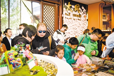本报讯 (记者 王春艳) “五一”期间,众多游客在我市感受深厚文化底蕴和独特古都风貌的同时,一款款精美的文创产品吸引人们把大同的“专属记忆”打包带走。日前,记者走进华严寺、善化寺、九龙壁景区的文创店,各个文创店都非常火爆,众多充满大同元素的文创产品也成为游客们的心头好物。