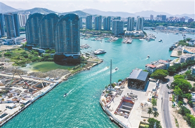 这是5月5日拍摄的三亚河口通道工程项目现场(无人机照片)。