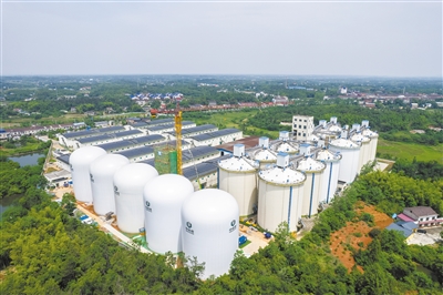 这是5月6日在中储粮长沙直属库拍摄的气膜粮仓建设施工现场(无人机照片)。
