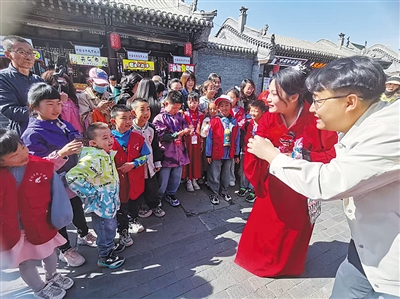 此次直播由大同日报传媒集团木兰工作室和大同市木兰文化研究会联合举办,以“古韵西街寻味大同,木兰挑战欢乐来袭”为主题,吸引了众多线上线下观众的热情参与。为了让广大小记者更好地了解古老的木兰文化与大同地域特色深度融合的故事,当天,20多名大同日报小记者积极参与到直播秀中,聆听主播讲解,参与“5秒吃完一个冰激凌”“尝尝是哪个醋”“背木兰辞挑战”等项目,在直播秀中留下他们精彩的瞬间。 本报记者 李玉玮摄