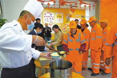 5月8日,由市城市管理局牵头,中励科技有限公司联合爱心企业共同组织的公益活动在万达广场举行,80余份热气腾腾的刀削面,为环卫工人、外卖小哥等一线劳动者送上温暖的关怀。 本报记者 于宏摄