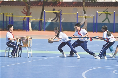 初夏时节,广西梧州新兴小学开展丰富多彩的阳光体育大课间活动,让学生在竹球、踩高跷、射箭、陀螺、滚铁环等传统体育项目中,享受运动的快乐。